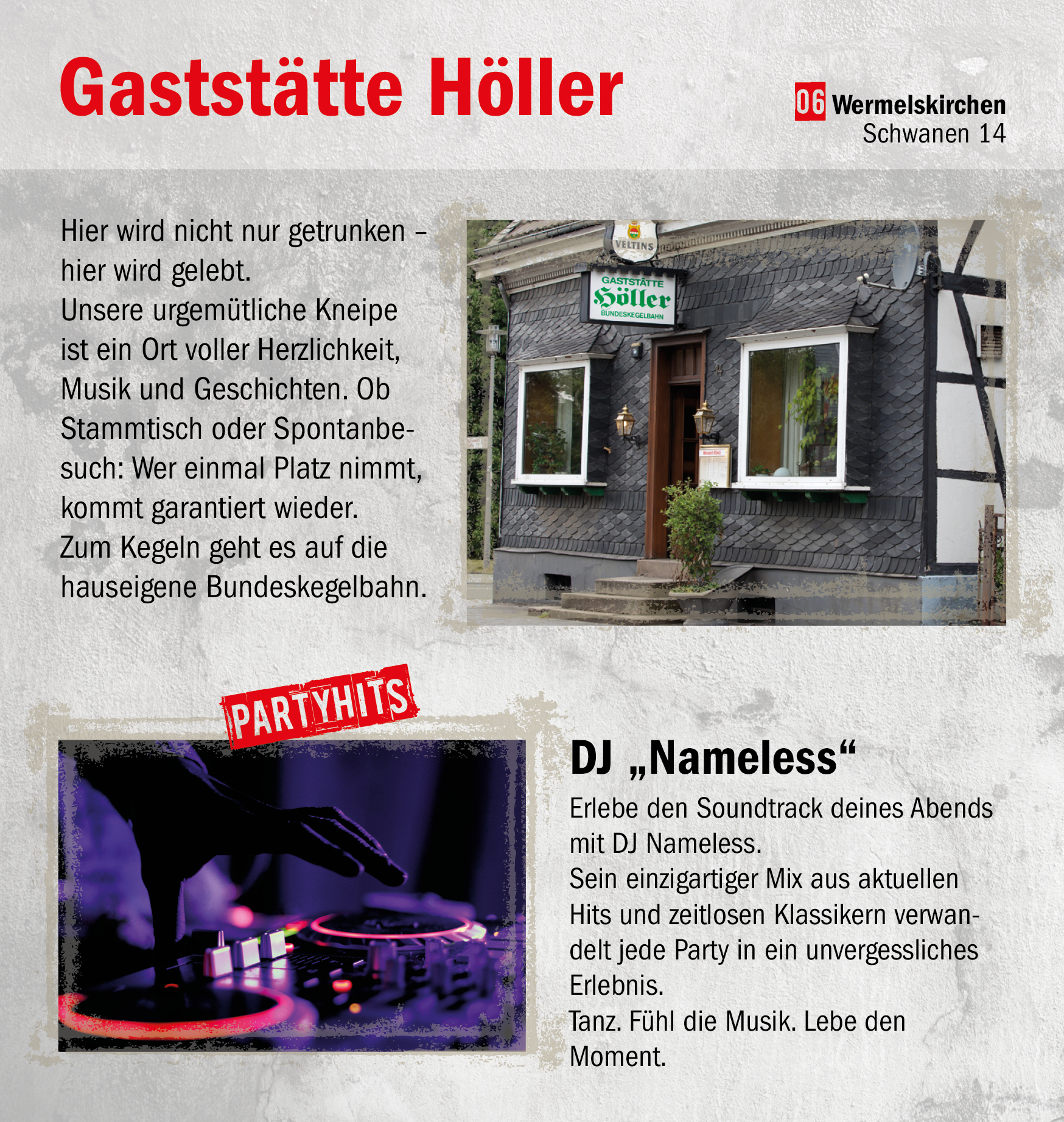 AJZ Bahndamm (Sonic Beat Explosion, Supercobra, Deviltrain), Bistro Katt (Bratsche), Centrale (Virus), CVJM (Mixtape 65), Das süße Leben (Jeanne Altfeld, Tuma), Gaststätte Höller (DJ Nameless), Haus Eifgen (Kaiser Franz & Hofkapelle, Bald Since Birth), JUCA (BarbarasBarBand, Abrisshelden), J & K Sportsbar/Grillbarhaus Delante, Kunstverein (Oh! Rooster), Restaurant Balkan (Party-Colonias 2.0), Restaurant Dimitra (Griechisches Duo), Toskana (WEMusik), Trattoria Capriccio, Dorfkultur (The Hamples, Chum Bucket), Markt 57 (Vom Fass), Zur Post (Nobbi)
